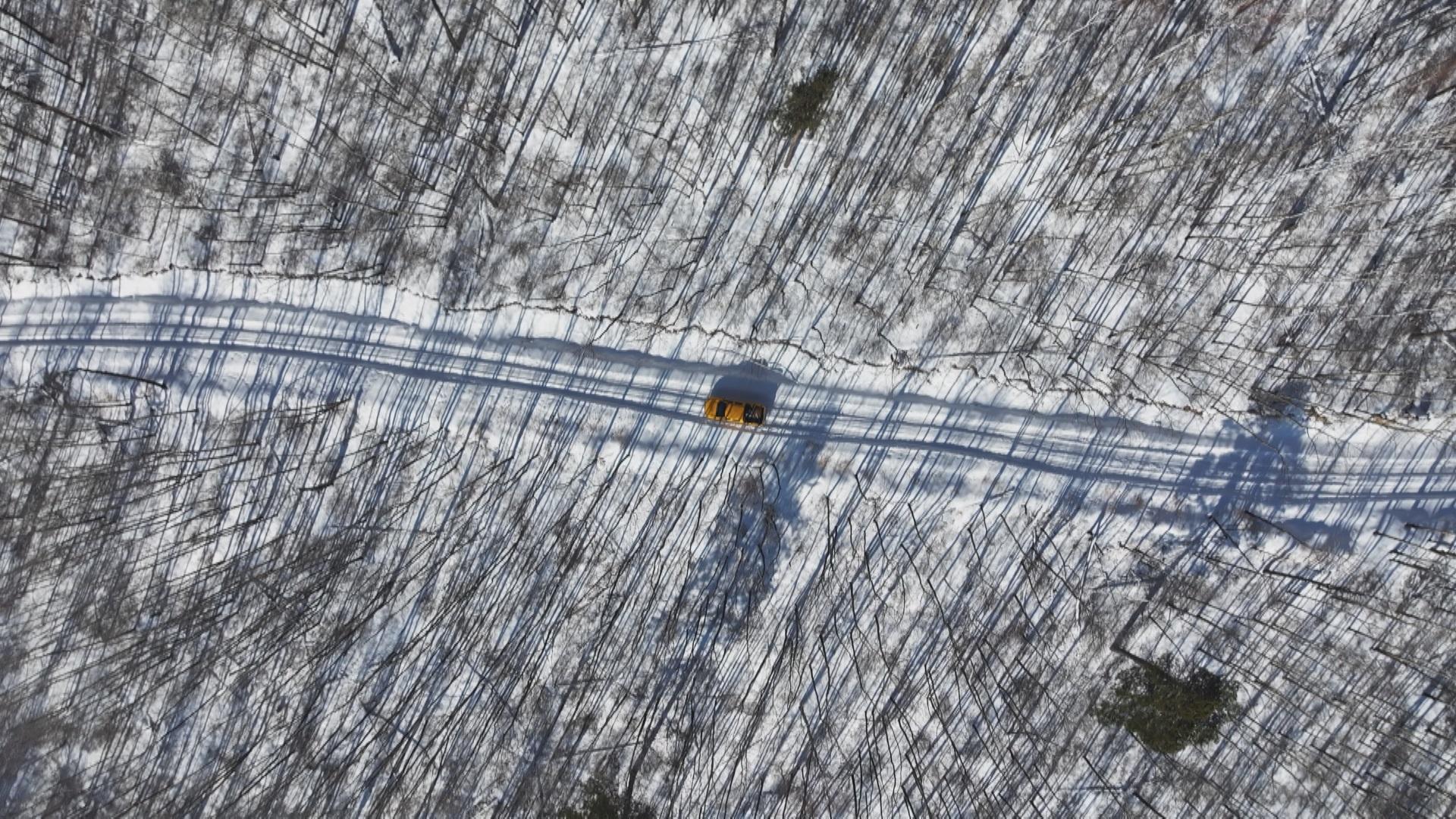 △柴瑞峰开车行驶在林海雪原中