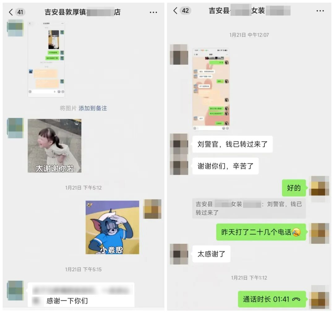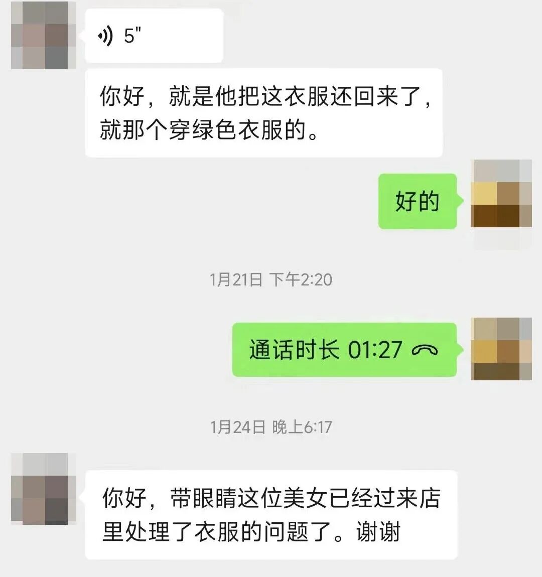 ▲辅警刘期胜与服装店雇主的聊天纪录。