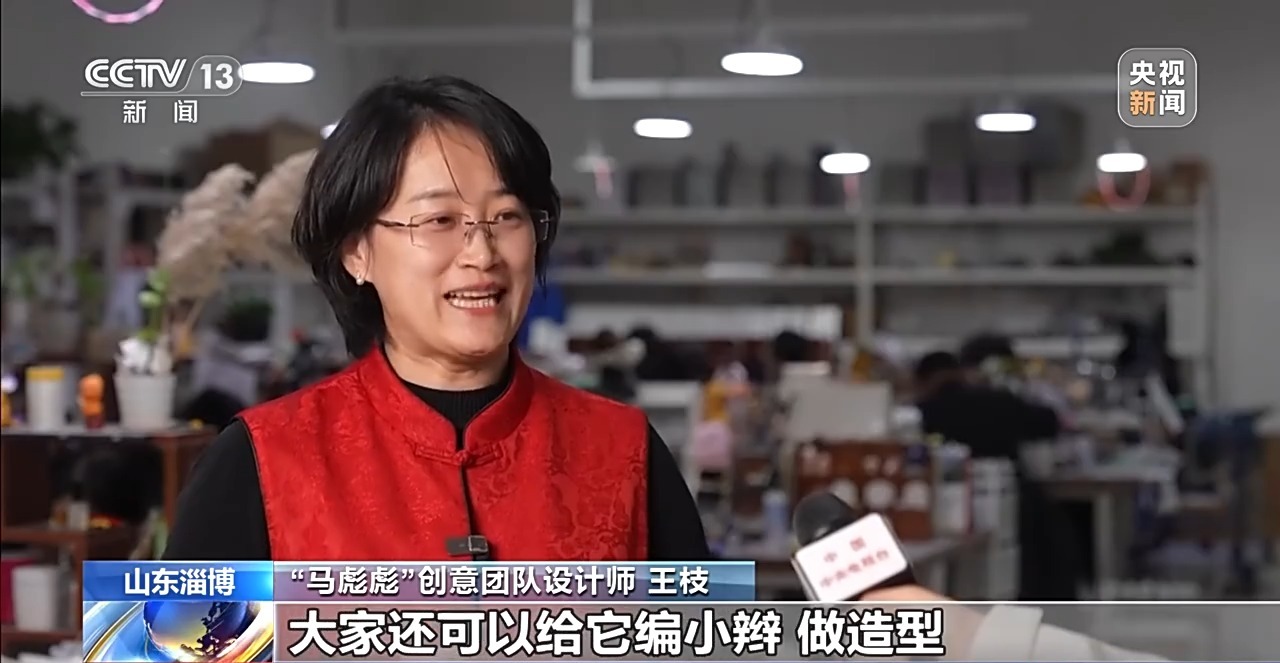 “马彪彪”创意团队策画师 王枝:咱们的彩塑作品,它是凝固的。就用了羊毛作念它的头发,这样看起来既柔嫩又灵动,民众还不错给它编小辫,作念造型,是以这个小马当前看起来像的确相通。