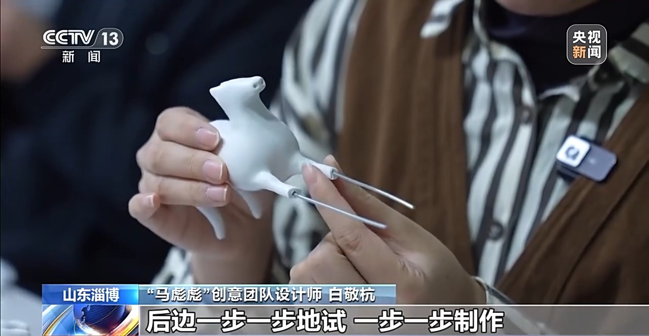“马彪彪”创意团队策画师 白敬杭:前期选的铁丝比拟细,制作的技能很厚实,烤完之后,它这个后腿就有点着地,后边一步一步地试,一步一步制作,然后最终及第了这个型号的铁丝。烤完之后,它也不变形,它的后腿一直是这种抬起来的一种景况。