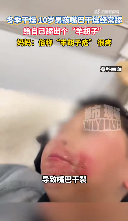 近日,安徽一10岁男孩因冬天干燥,嘴巴干燥频繁舔,给我方舔出个“羊胡子”,俗称“羊胡子疮”,也即是儿童口周皮炎。