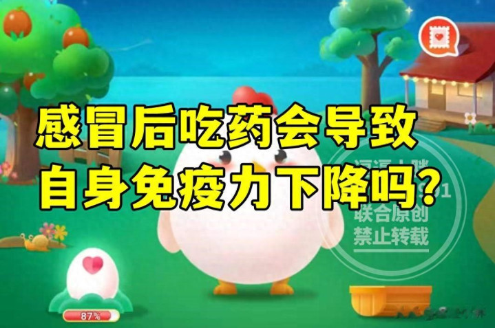 以上便是蚂蚁庄园教训题目:伤风后吃药会不会导致免疫力下落?单板滑雪双板滑雪哪个对平衡条目高?的谜底明白,但愿全国会心爱。