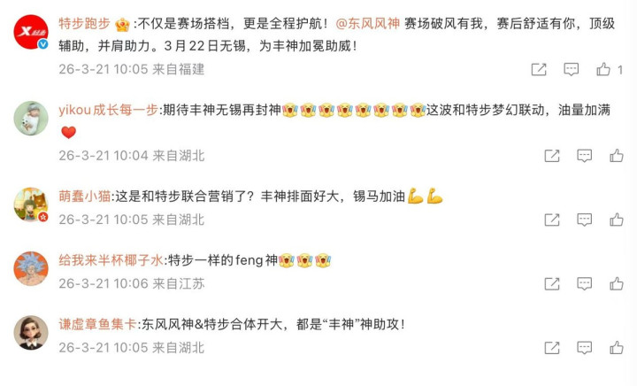 而在线上平台,#丰配友✖东风风神#关联话题热度抓续攀升,两边官方账号互动时常,粉丝纷纷晒出打卡俄顷,酿成线上线下双向引流。这次跨界联动,不仅终局了品牌与用户的高效结合,更让“长距离欠息争”的精神从赛谈延长至更广大的糊口场景。