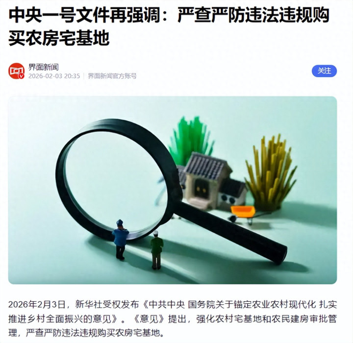 客岁的文献里写着,不唱和城里东说念主去农村买房买地,也不唱和退休干部去占地建房。本年径直明文轨则,严禁把集体策划性竖立用地拿来盖商品住房。文献明确使用了“严查小心”四个大字,条目各地严厉查处违法违章购买农房的行径。