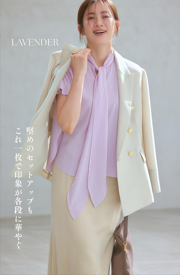 换个念念路,把灰紫放到衬衫上也行。淡紫色的飘带衬衫内搭白色西装,领口的飘带默契来,心绪上的点睛有了,风光上的细节也有了,共事看了皆会多看两眼。这种搭法好在不突兀,融在任场环境里充足没问题,但比纯白衬衫有益思意思得多。