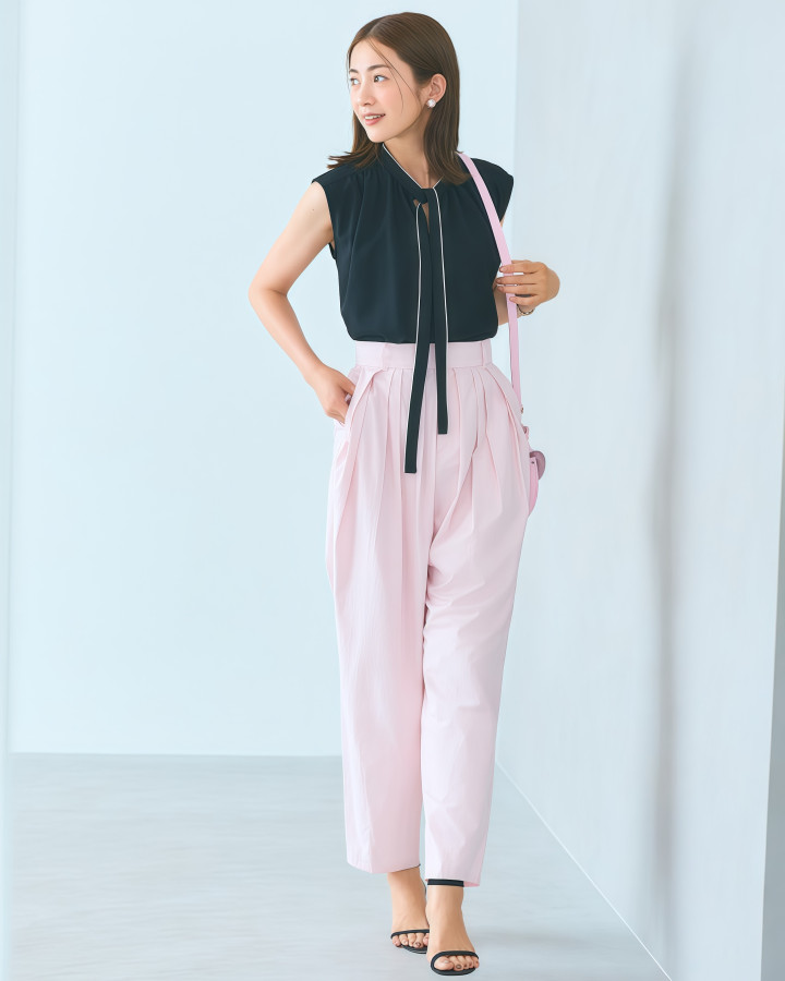 ✔ 粉色至意衫配黑裤,答允又百搭