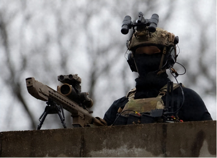 该图像裸露了又名狙击手在高处操作一支装有专有枪口安装的步枪,国防不雅察家以为这是一种多功能枪口安装(MFMD)。该安装由计谋科学公司诱惑,该公司暗示,传统的枪口安装时常需要在声息禁锢、闪光减少和反冲力甩掉之间进行衡量。