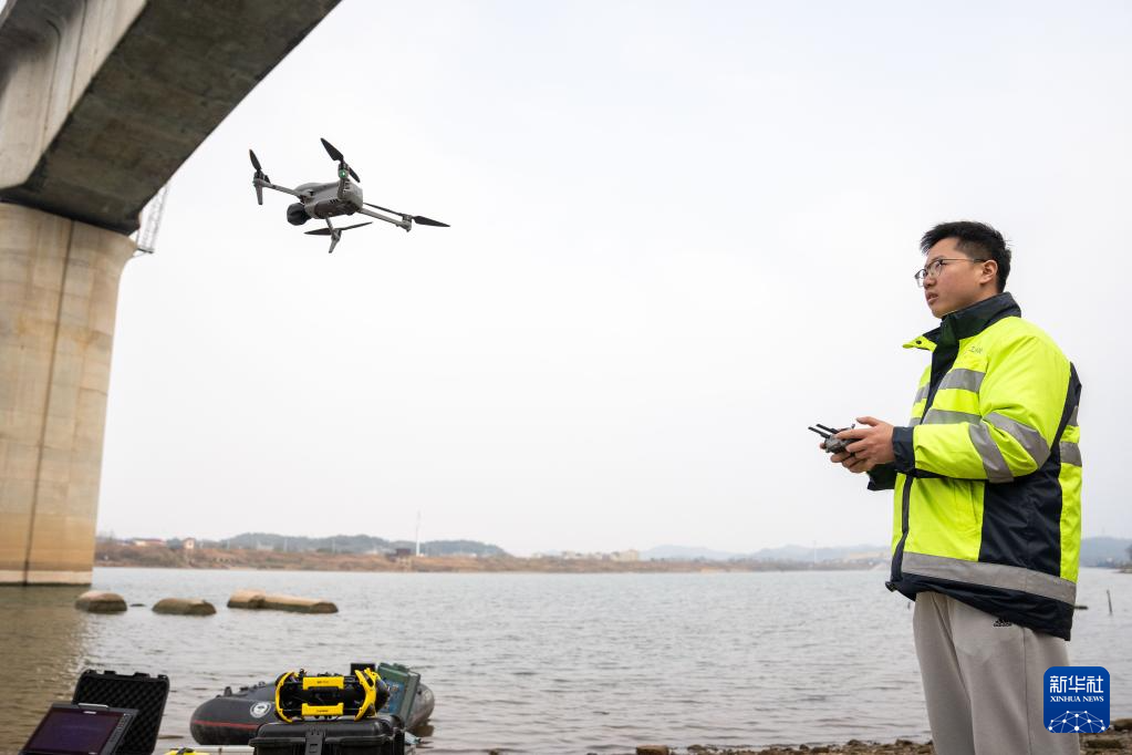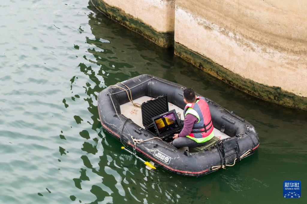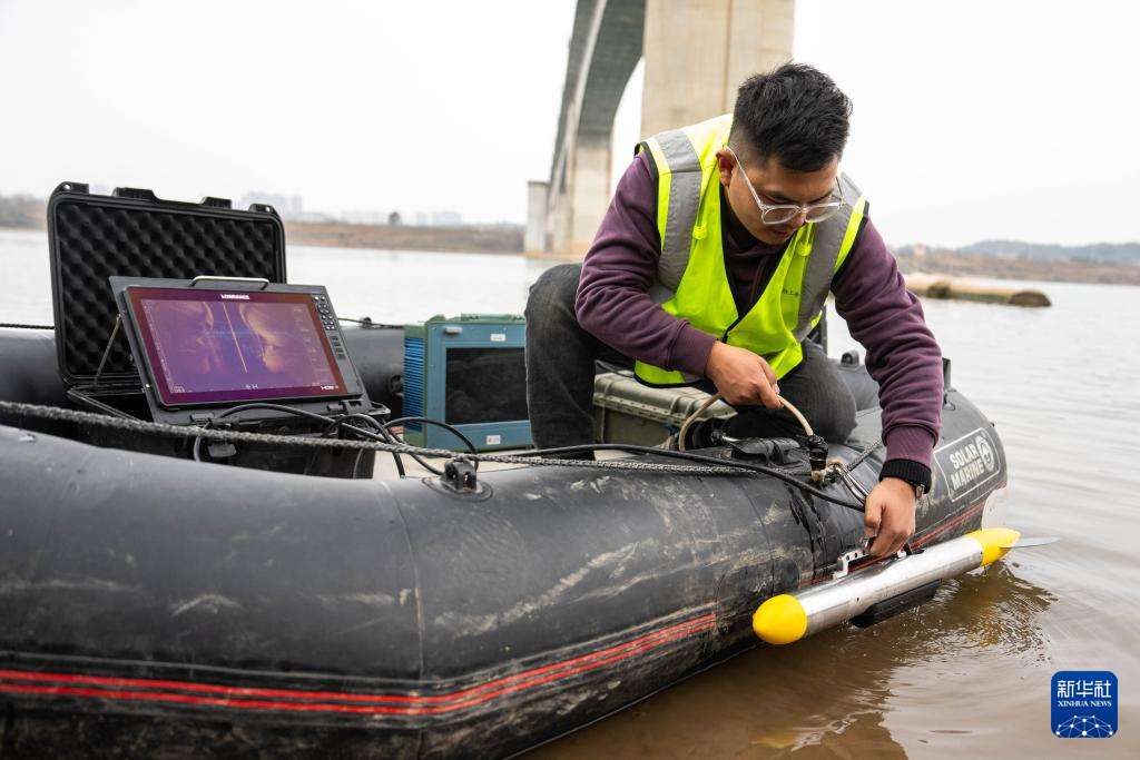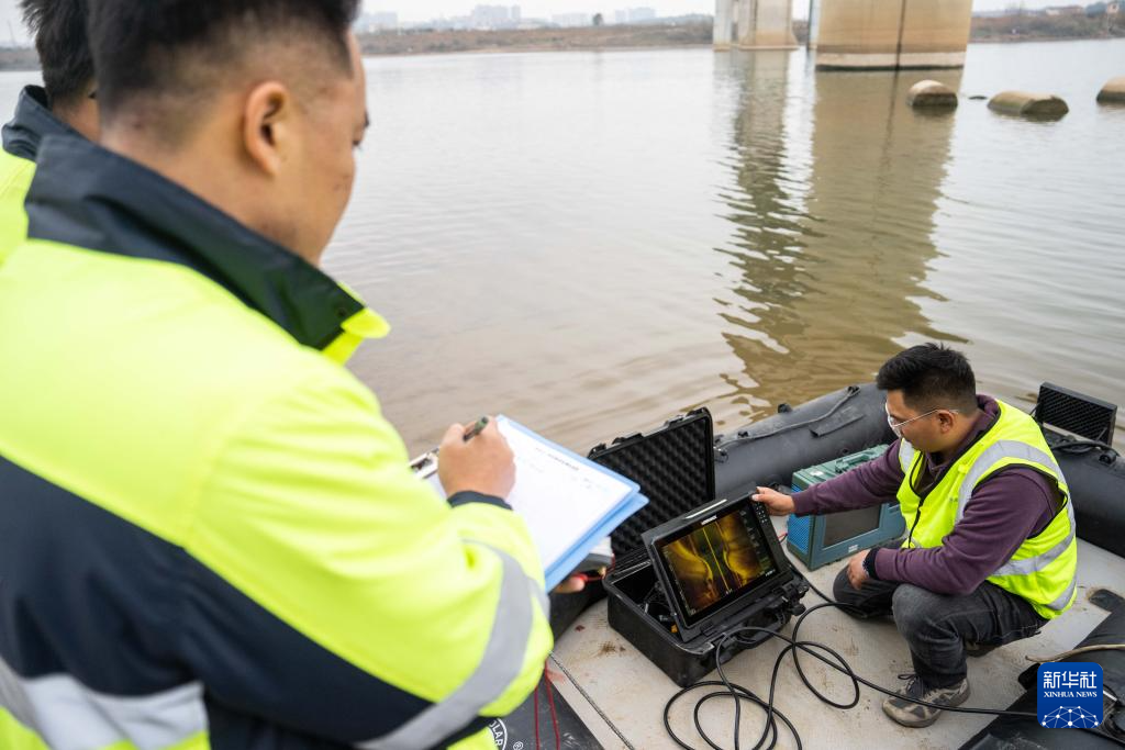轮盘铁路工东说念主在搭载声呐检测系统的汽艇上进行水下墩身成像功课(无东说念主机相片)。 2026年春入手将启动,为作念好铁路运载保险使命,中国铁路广州局长沙高铁工务段使命主说念主员支配无东说念主测量船、水下机器东说念主、无东说念主机等新式建造,对铁路桥梁、桥墩、河说念等进行检测,督察列车入手安全。 新华社记者 陈想汗 摄pagebreak" />