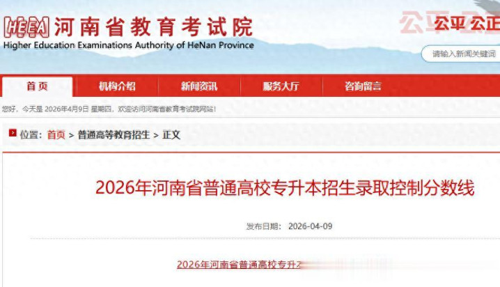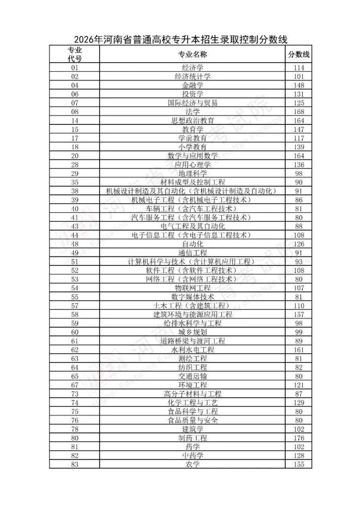 2026年河南省鄙俚高校专升本招生考中戒指分数线