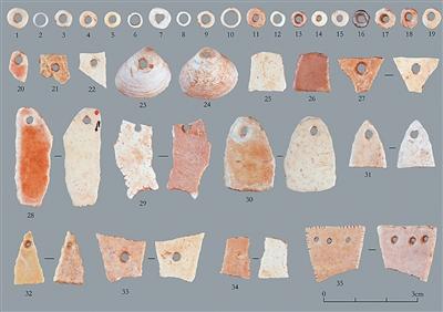 “冢上出土的器物多为祭祀、陪葬性质遗存,极少生活用器,质地主要为陶、玉、石、骨、蚌等。此外,冢内还出土了大量用蚌、珍珠、螺等制成的饰品,多数为穿孔佩戴,也有与天河石搭配镶嵌使用的。”龚湛清说。