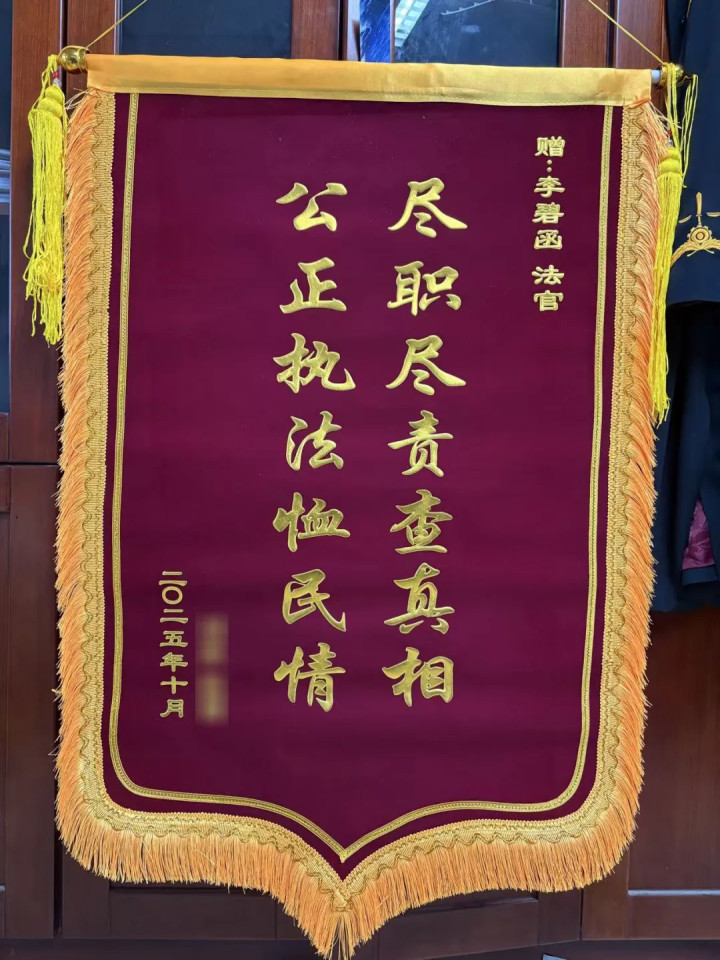 判决发出后,我很快收到周阳的感谢信:“这个判决是对我精神上的复旧,从仳离到当今我一个东谈主带孩子、护理父母、支吾多样景色……相当谢意您在一审中发达出来的包袱心和细巧。”锦旗也不久送到:遵法尽责查真相,自制公法恤民情。金色的流苏垂在案头,像一束蔼然的光,照亮了卷宗里那些冰冷的翰墨,也让我更懂了法官这份劳动的分量——咱们办的从来不是案子,而是别东谈主的东谈主生;咱们写下的每一份判决,王人可能成为一个家庭从头开拔的底气。