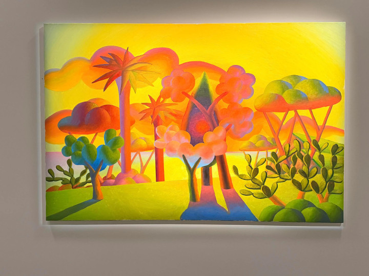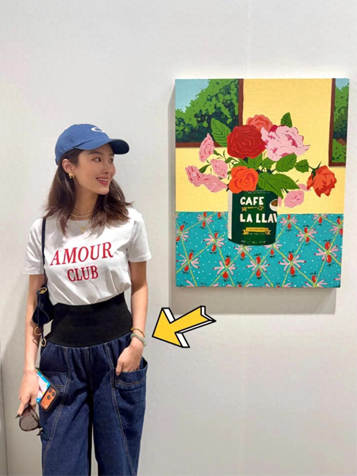 杨采钰本东谈主很有艺术气味,她也在学习画画,她站在这幅画傍边拍照很好意思。杨采钰穿了件大略的白色T恤,戴着蓝色棒球帽,这身穿搭很芳华有活力。杨采钰手腕上叠戴了黄金手串和玉手串,黄金与翡翠叠戴贵气王人备。
