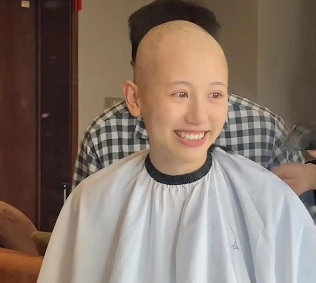 化疗反作用在第三次治愈后驱动贯通,脱发透顶失控——"每天早上醒来枕头上全是掉发,梳头发一梳掉一大把,浴室地漏世俗被头发堵住"。与其被迫恭候头发掉光,不如主动给我方一个体面,4月10日,她下定决心剃光总共头发,还幽默地在秃顶上画了蓝色小丸子,配文"蓝色战袍2.0,限量款,不议价",乐不雅格调让东说念主既醉心又敬佩。