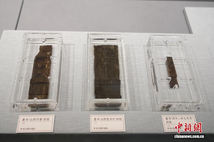 现场,绍兴稽中行状出土的三枚汉代封检引东说念主瞩目。