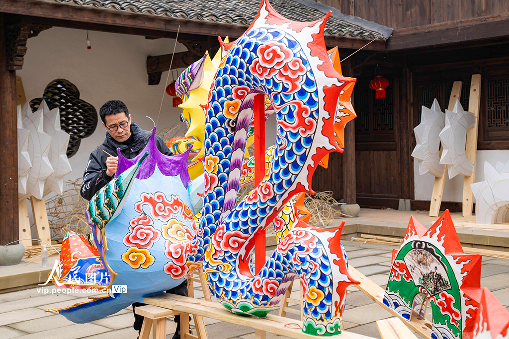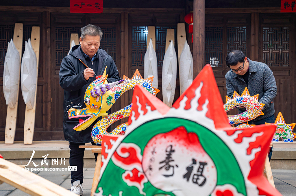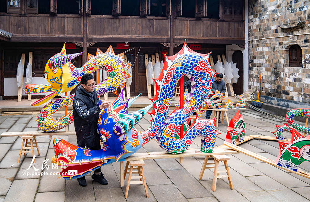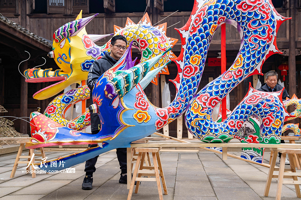 轮盘 浙江浦江:赶制非遗板凳龙迎新春