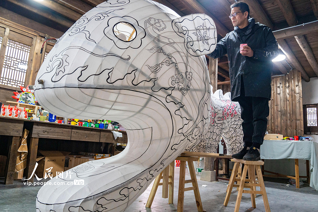 轮盘浙江金华浦江县岩头镇三红村文化会堂内,板凳龙制作团队正在加紧扎制龙身骨架、裱糊遮挡,为新春舞龙活作为念准备。陈业摄(东谈主民图片网)" />