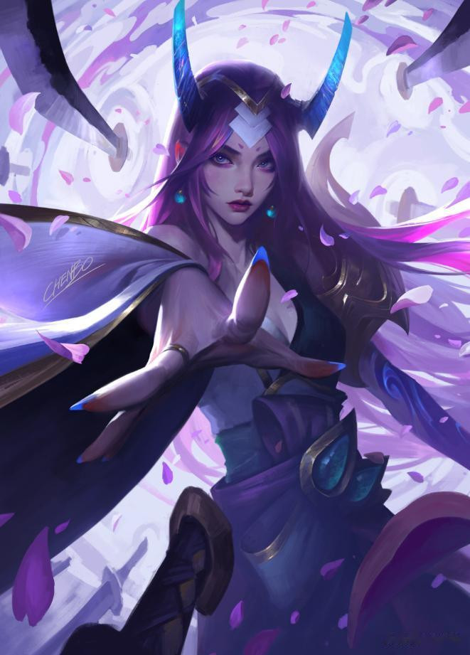 对于不太了解的读者来说,陈波是拳头游戏原画团队的核心首席插画师之一,也是团队中备受瞩目的中国艺术家,在国内社交媒体平台上也拥有个人账号。多年来,他参与创作了大量广为人知的皮肤原画,包括但不限于:初代与二代K/DA系列、名人堂-卡莎、名人堂-乐芙兰、EDG冠军皮肤系列、心之钢系列、北极星-黛安娜、暗星-烬、驯龙女巫-婕拉、太空律动-格温、未来战士-瑞文、灵魂莲华-永恩、泳池派对-凯特琳等。此外,他还绘制了彗、奎桑提、梅尔、赛娜、赵信、亚恒等英雄的基础原画。