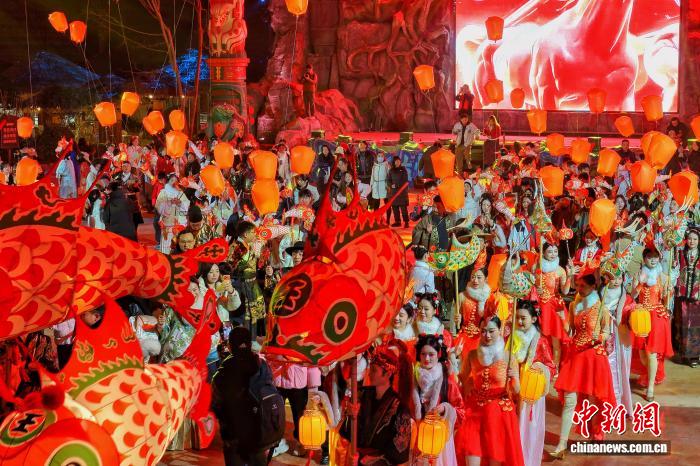 轮盘游戏app下载游客穿上汉服拍摄国潮写真,火龙、变脸等传统绝活轮番上演,以汪满田鱼灯为代表的非遗鱼灯巡游宛如流光溢彩的星河,勾勒出一幅“鱼影漫江峡”的诗意画卷。图为鱼灯巡游。董晓斌 摄" />