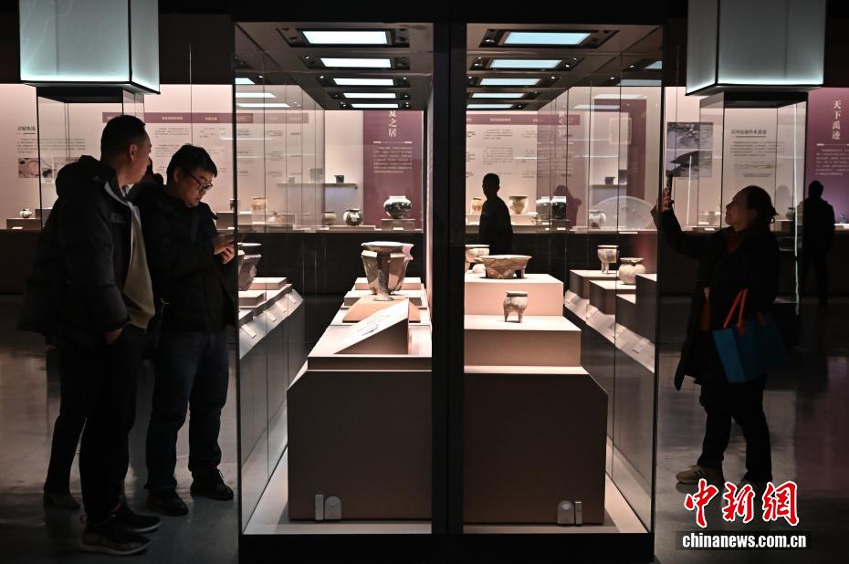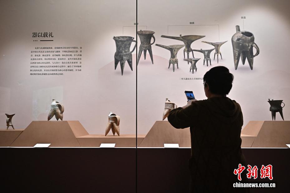 轮盘“夏时期的中国”特展在山西青铜博物馆开幕,展览汇集河南、辽宁、甘肃等全国31家文博单位的250余件文物,这也是中国首次全景式系统展示夏文化脉络。图为民众参观夏时期出土文物。" />