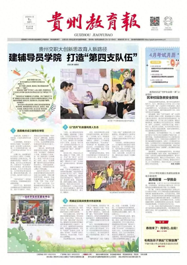 近日,《贵州教授报》头版对贵州交通做事大学建提醒员学院,打造“第四支戎行”进行了报说念。
