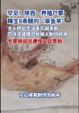 该繁衍场另别称工东说念主武先生告诉极目新闻记者,那时他崇拜给母羊接生,这只8条腿的乖僻羊降生时仍是死了,肚子皆莫得长完好,他亦然第一次见到这种情况,嗅觉很极度。