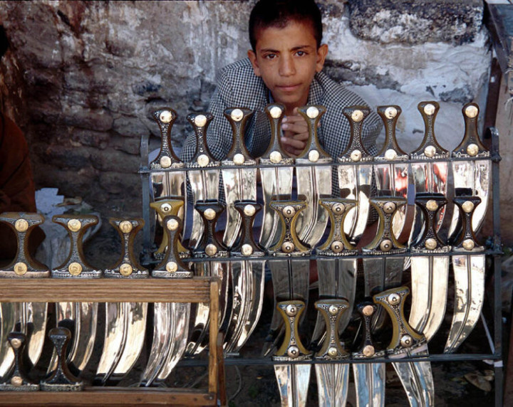 也门塔伊兹街头,别称小贩在兜销詹比亚匕首。