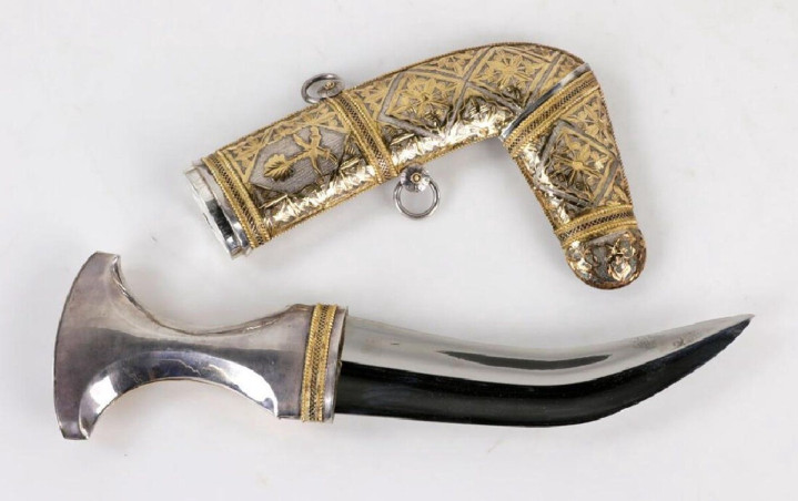 这把名为“詹比亚”(jambiya)的弯刀,由也门最大的部落定约巴基勒酋长纳吉·伊本·阿卜杜勒阿王人兹·沙亚夫以100万好意思元购得,被以为是历史上最时髦的刀兵。其价钱高亢的原因在于这把刀兵的年代久远,已有千年以上的历史。它曾属于1948年至1962年在位的北也门国王艾哈迈德·哈米德·丁,在此之前,它属于公元7世纪的伊玛目沙拉夫·丁。