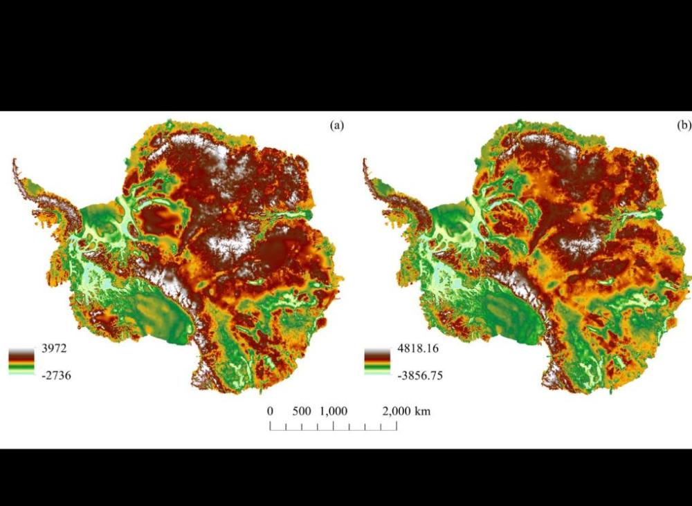 南极冰下地形高程图。(中国极地商榷中心供图)