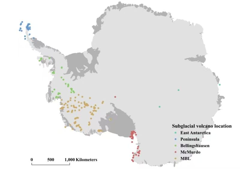 南极冰下火山散布图。(中国极地商榷中心供图)