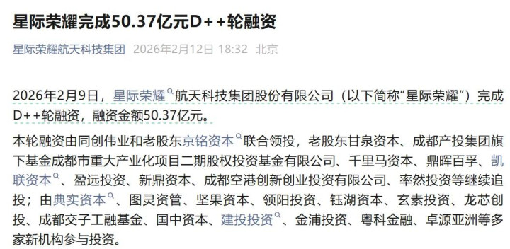 2026开首,营业航天就掀翻一波成本激越!刚刚!民营火箭公司中最大一笔融资出现了。