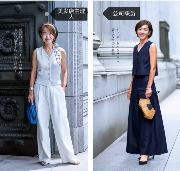 在日系穿搭中,基础色单品特殊常见,何况日系穿搭很擅长欺骗基础色,通过不同的版型搭配,让举座穿搭恶果显得愈加当然安逸,比如米白色小西装+西裤的套装,西装是宽松的大廓形,西裤是阔腿裤的版型,且面料垂感好,举座恶果就呈现出一种松懈高等,而将西装换成白衬衫,又是另一种失业气质好意思。