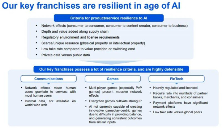 腾讯公司在18日发布的事迹演示中,也抽象回来旗下业务具备六大在AI时间的韧性(resilient),包括: