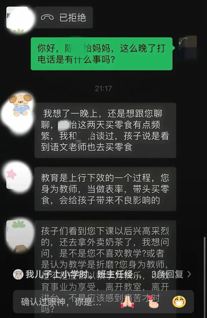 近日,一段家长与班主任的深夜聊天纪录,激发烧议。