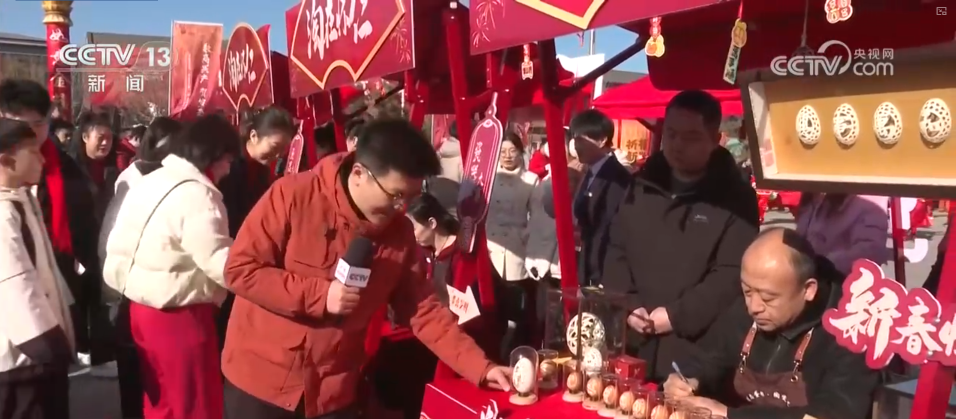 看完扮演,再来逛逛好玩的展销区。这里的年货种类丰富,特质显着。领先是怀仁陶瓷展区,怀仁陶瓷主如果日用瓷具,也便是日常使用的勺、碗、盘、碟等,此外还有细致好意思不雅的陶瓷摆件。傍边这个展台是蛋雕,时间东谈主在薄薄的鸡蛋壳上镌脾琢肾,相等熟悉时间东谈主的功底,力度轻重、明暗线索皆要拿抓精确。