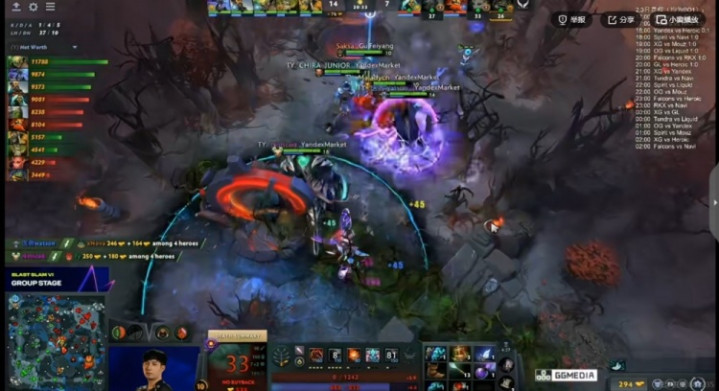 [35分钟]Yandex直接冲上高地,watson电魂BKB冲锋配合队友直接秒掉了Ame奶绿!面对巨大的经济劣势XG也扛不住输出啊!被各个击破,watson电魂三杀!XG交出三个买活想打一波但是Yandex直接撤退!