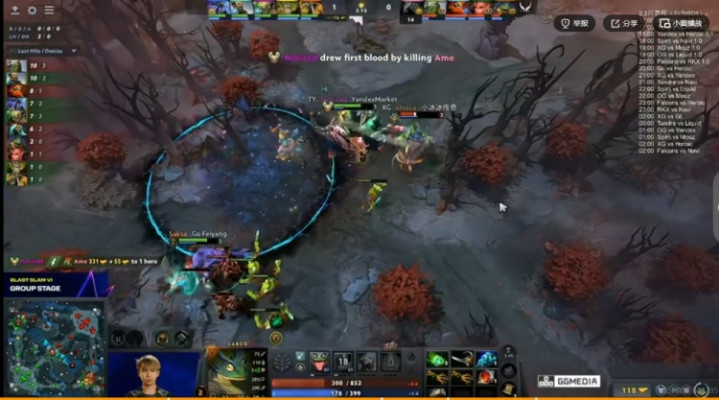 [2分钟]上路Noticed孽主贴脸火雨+框,配合Saksa小Y合力线杀掉了Ame奶绿!一血给到孽主!