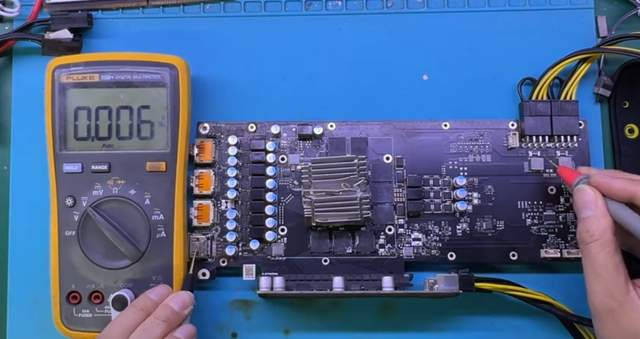 接下来就插足了张哥最拿手的教育四肢,跟着万用表的指针卓越,很快这块显卡就在其辖下回生了,自大上电秒杀。